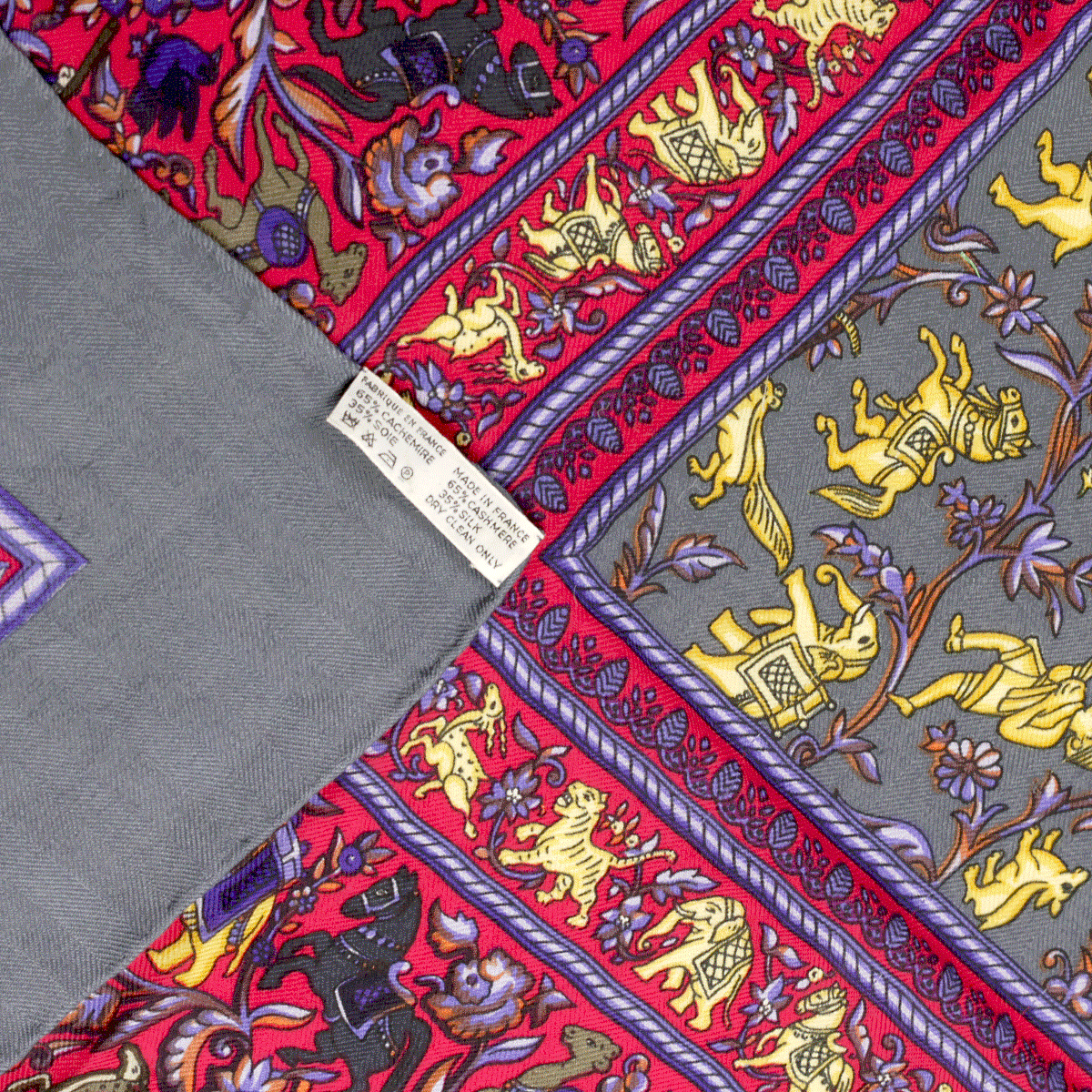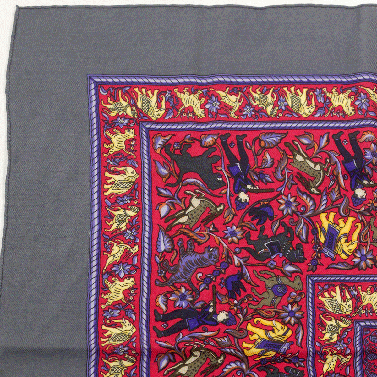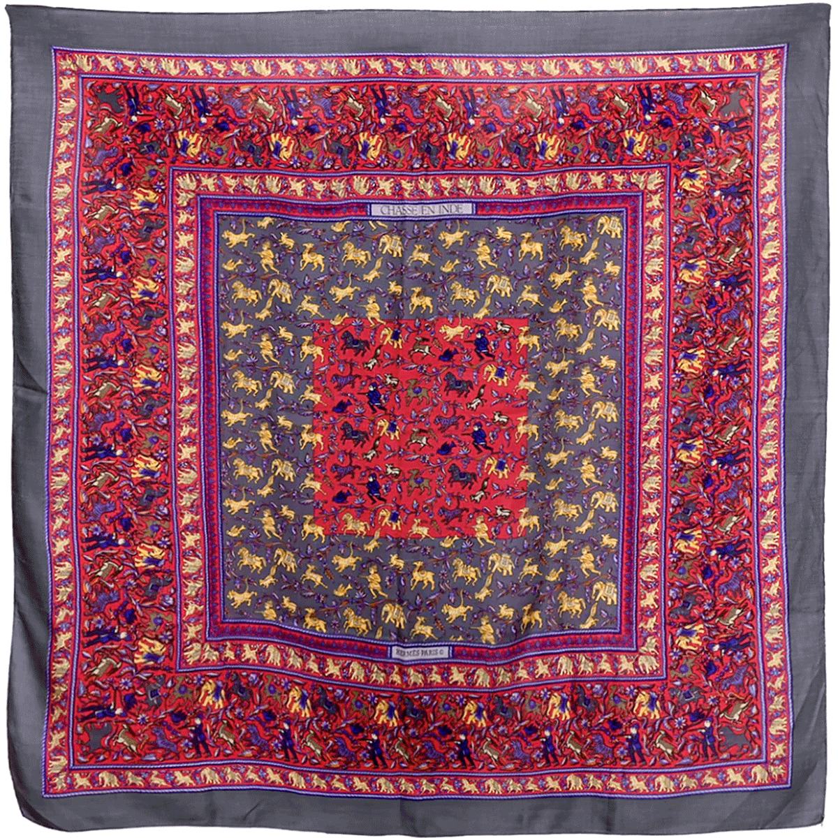 Hermes Cashmere Shawl 140cm "Chasse en Inde" by Michel Duchene