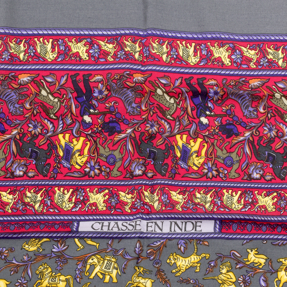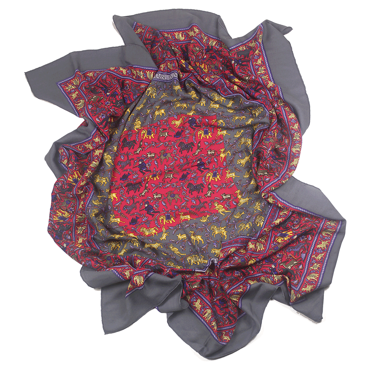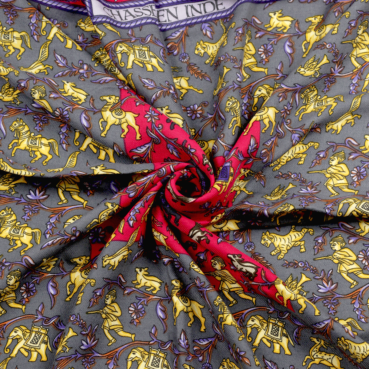 Hermes Cashmere Shawl 140cm "Chasse en Inde" by Michel Duchene