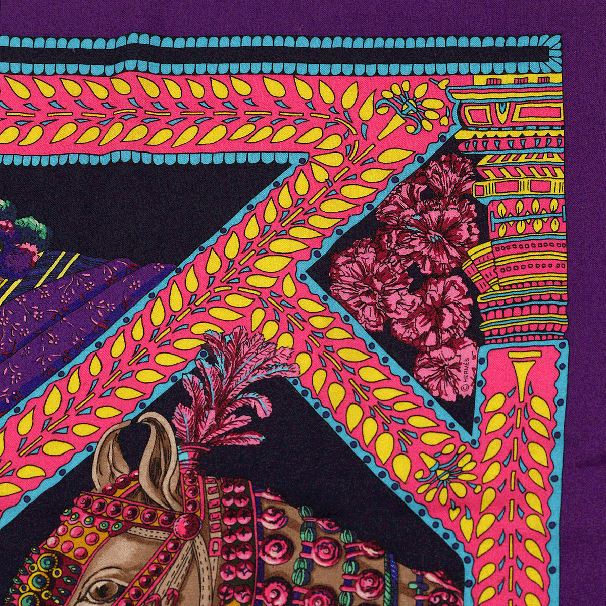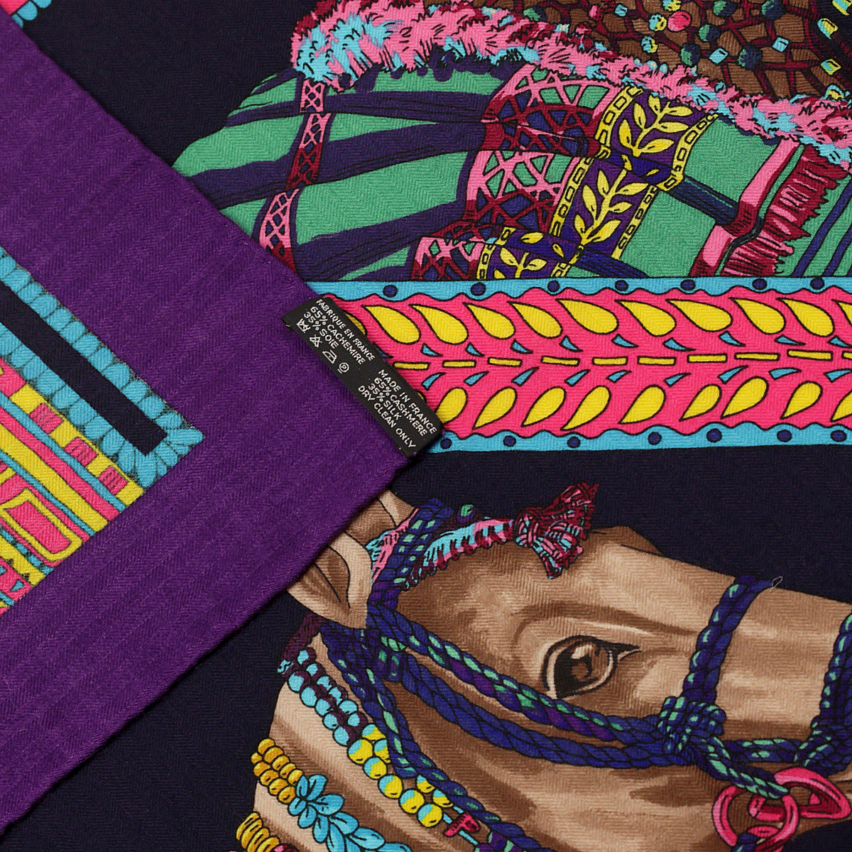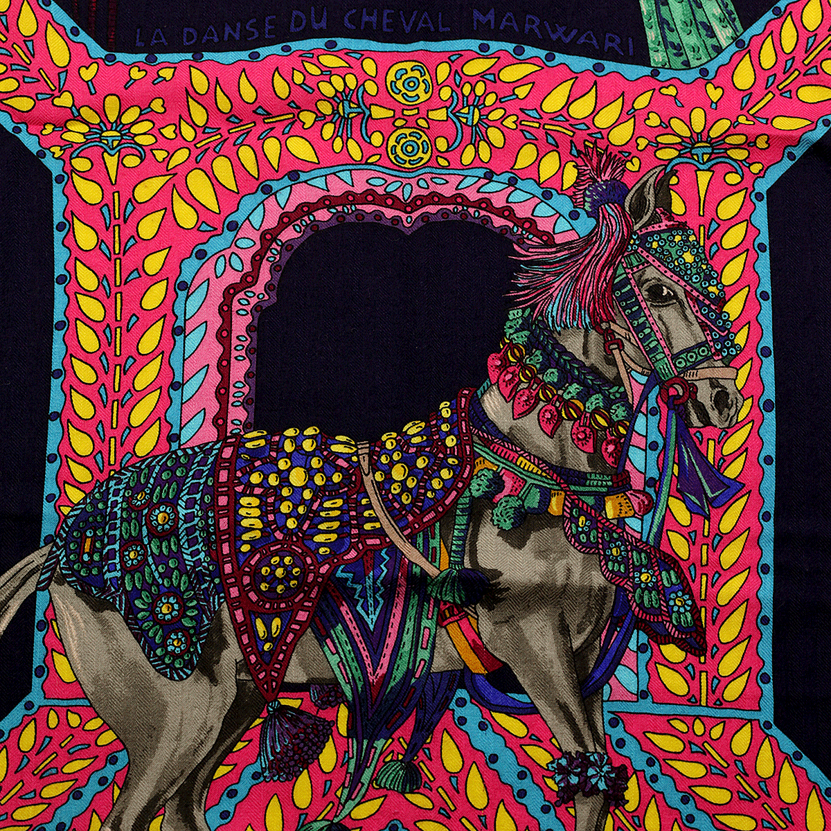Hermes Scarf "Danse du Cheval Marwari" by Annie Faivre 140cm Cashmere Shawl