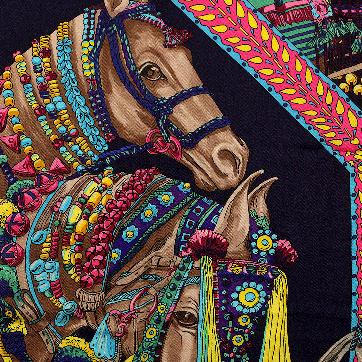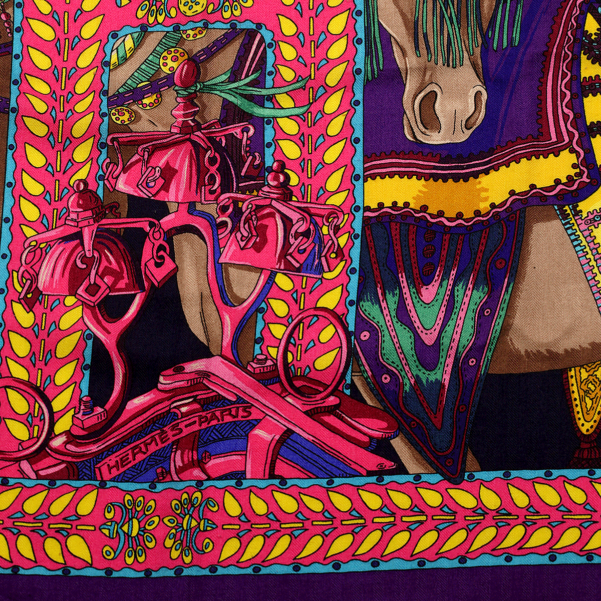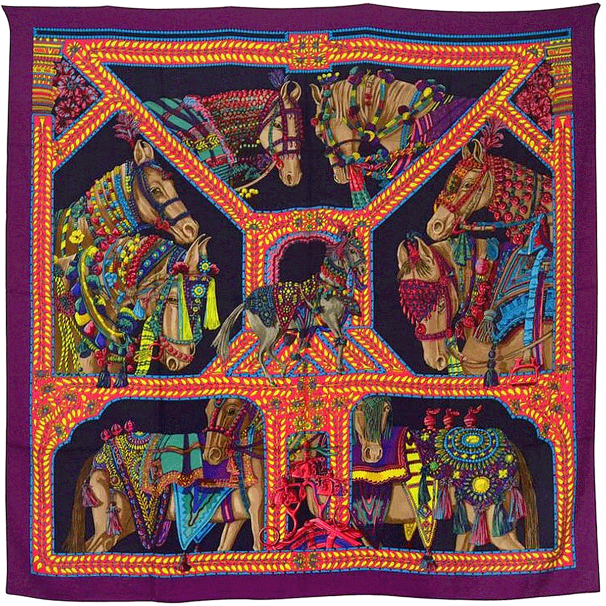 Hermes Scarf "Danse du Cheval Marwari" by Annie Faivre 140cm Cashmere Shawl