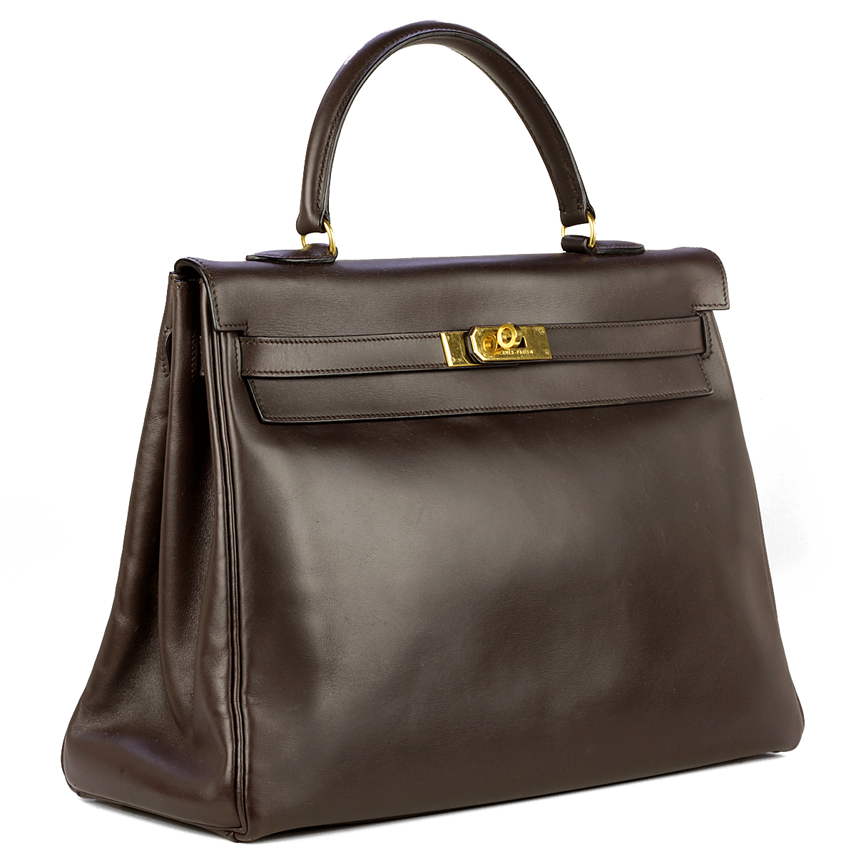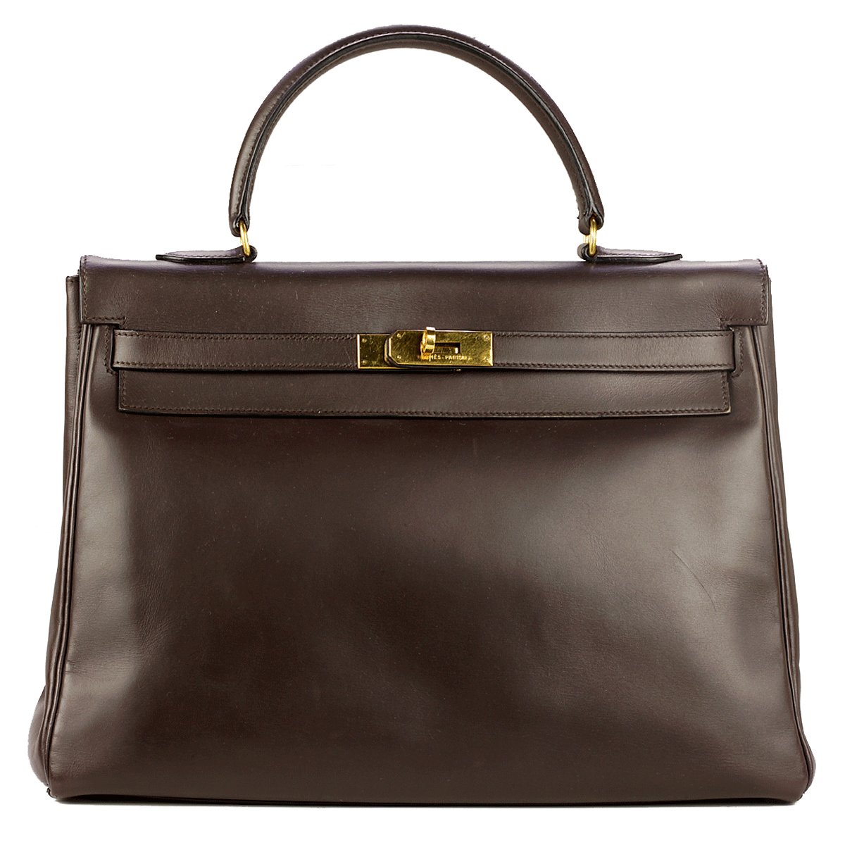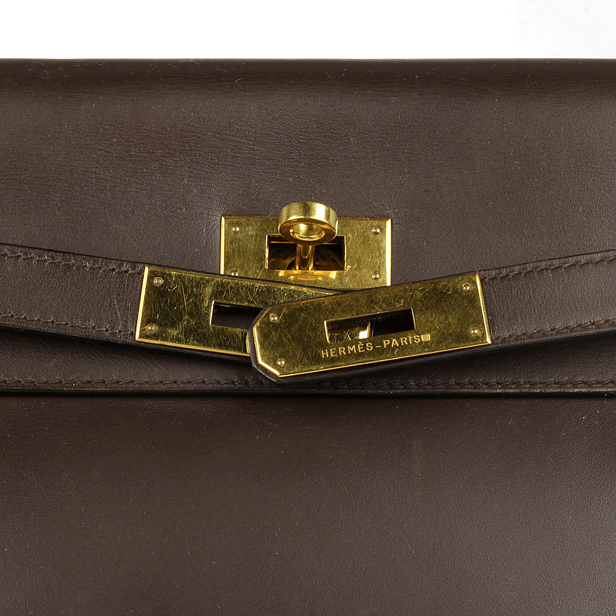 Hermès Kelly Bag Retourne Brown Box Calf with Gold Hardware 35