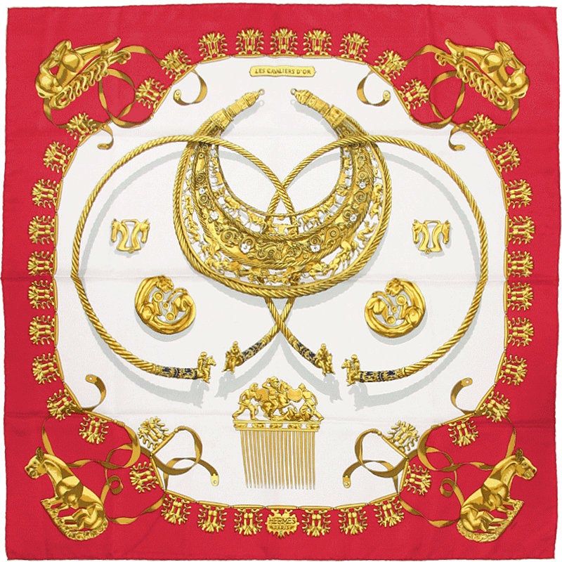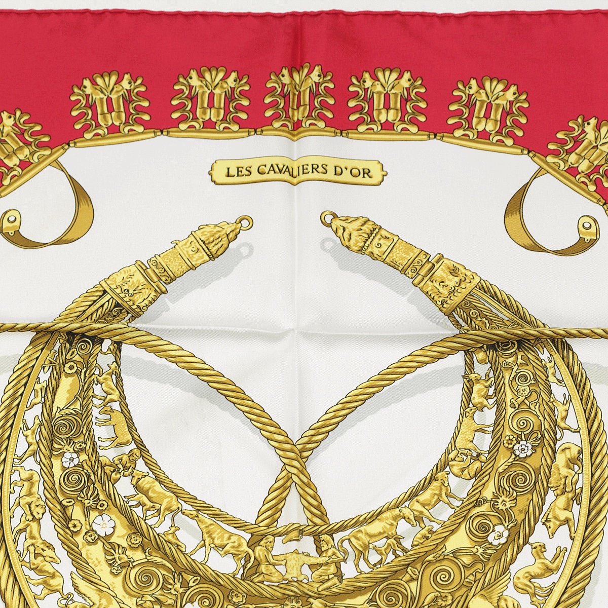 Hermes Scarf "Cavaliers d'Or" by Vladimir Rybaltchenko Vintage 90cm Silk