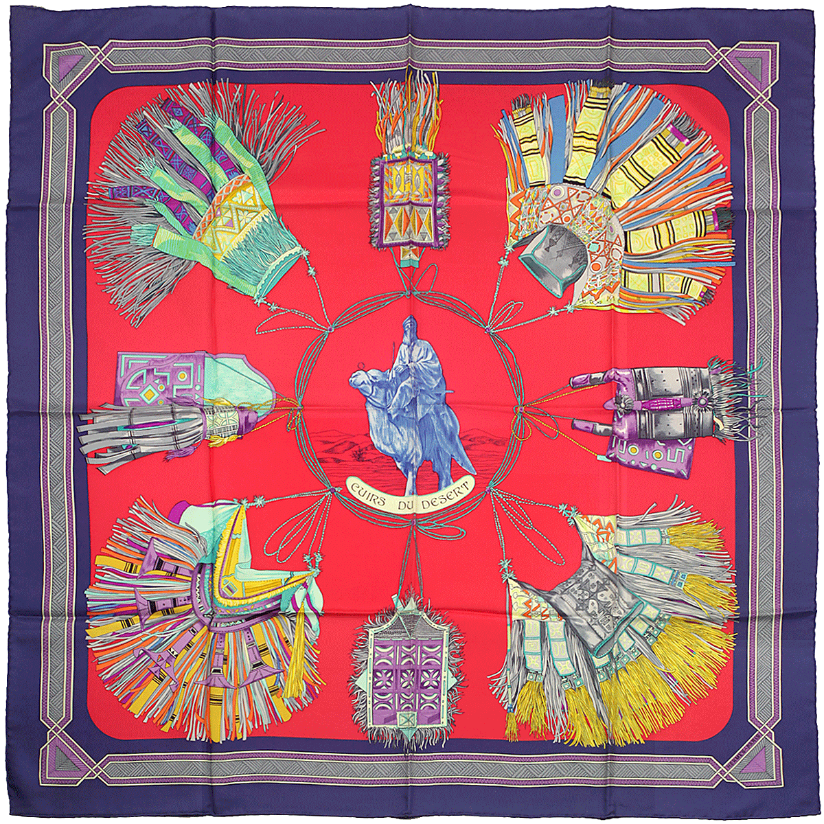 Hermes Scarf "Cuirs du Desert" by Françoise De La Perriere Vintage 90cm Silk