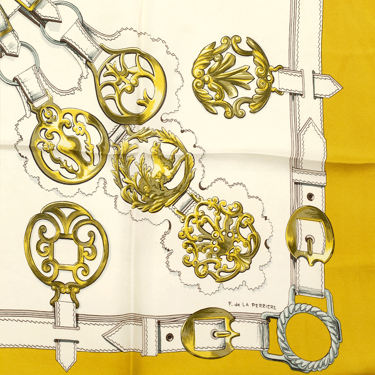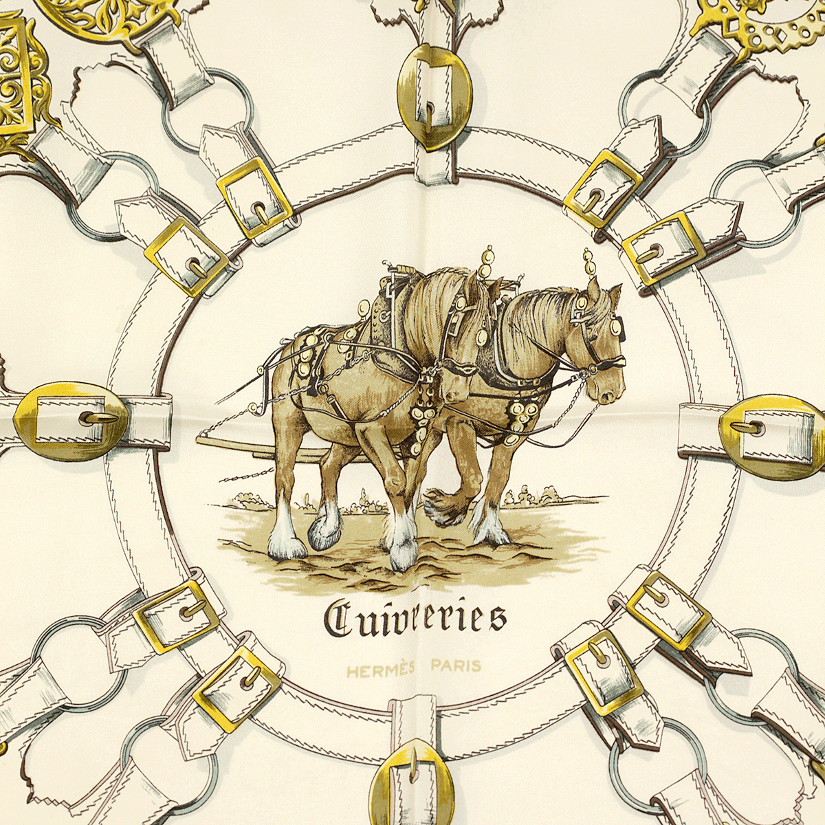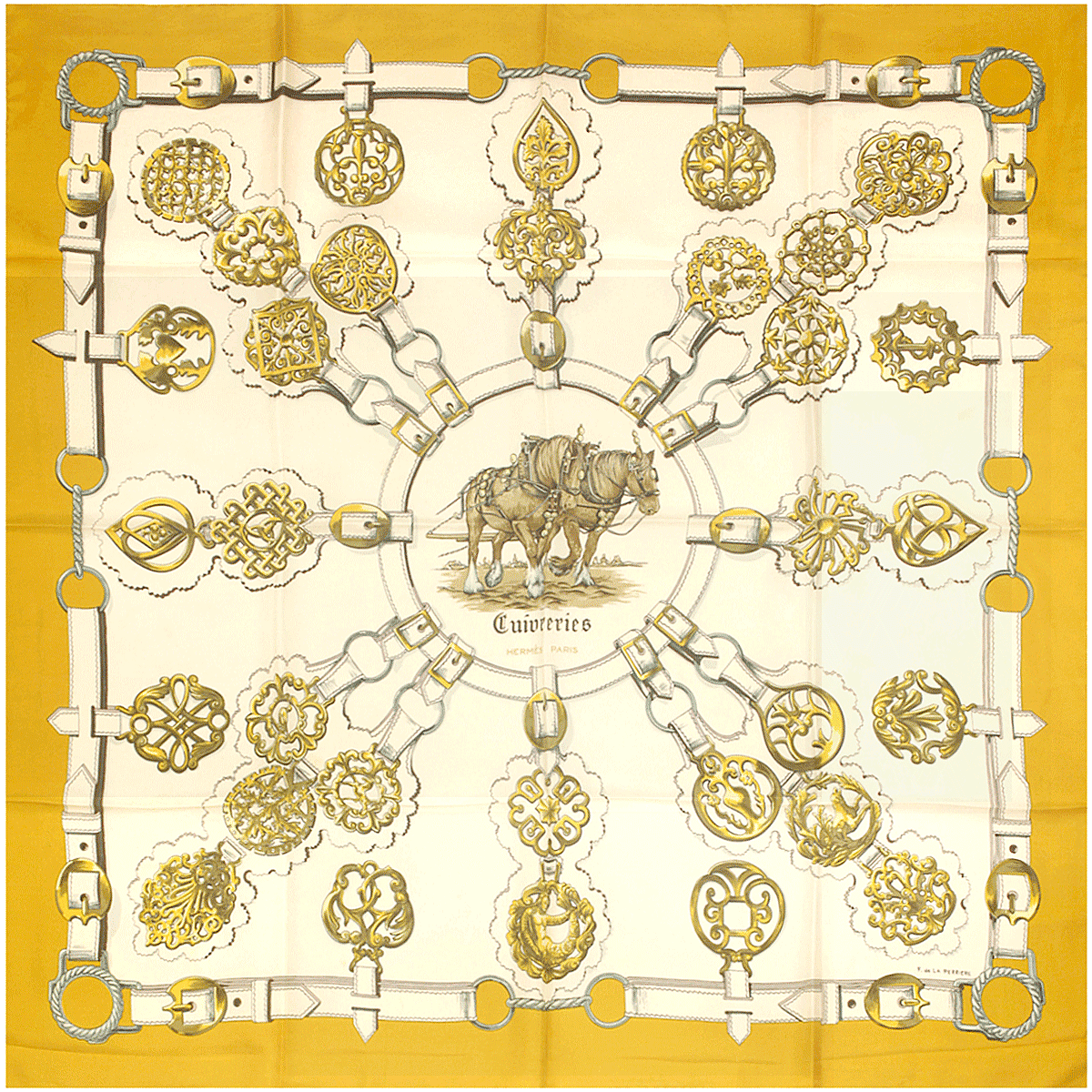 Hermes Scarf "Cuivreries" by Françoise De La Perriere Vintage 90cm Silk