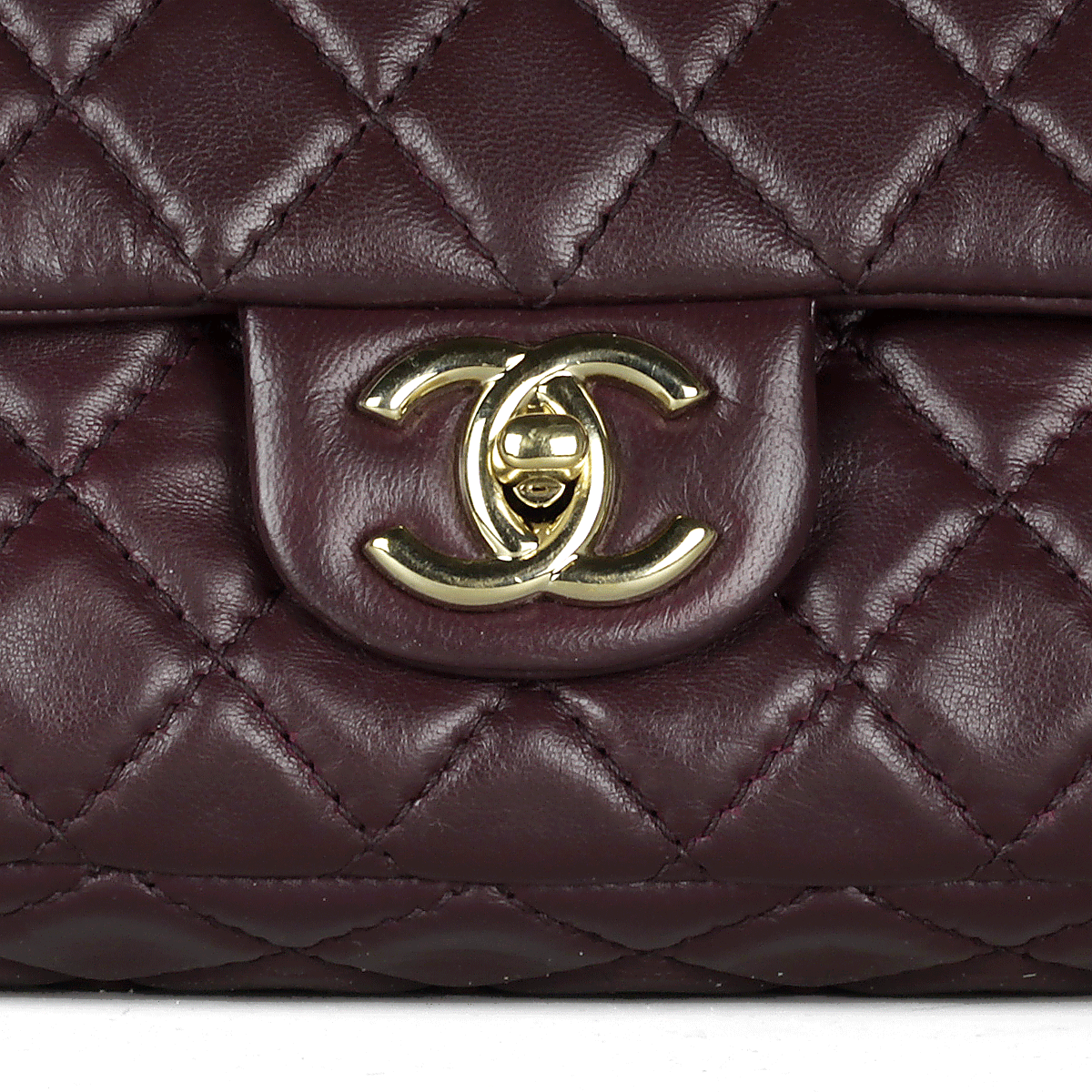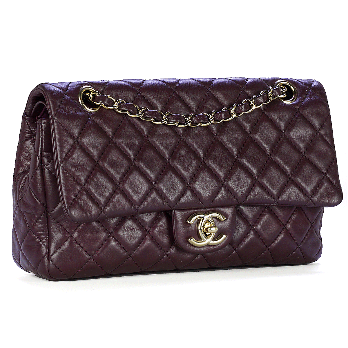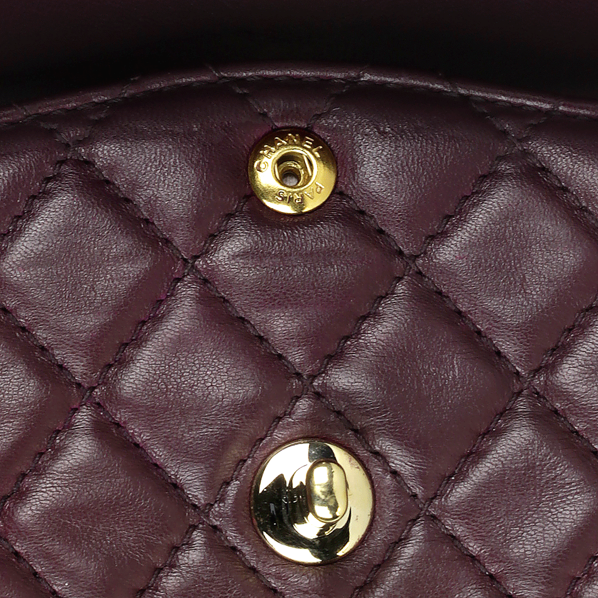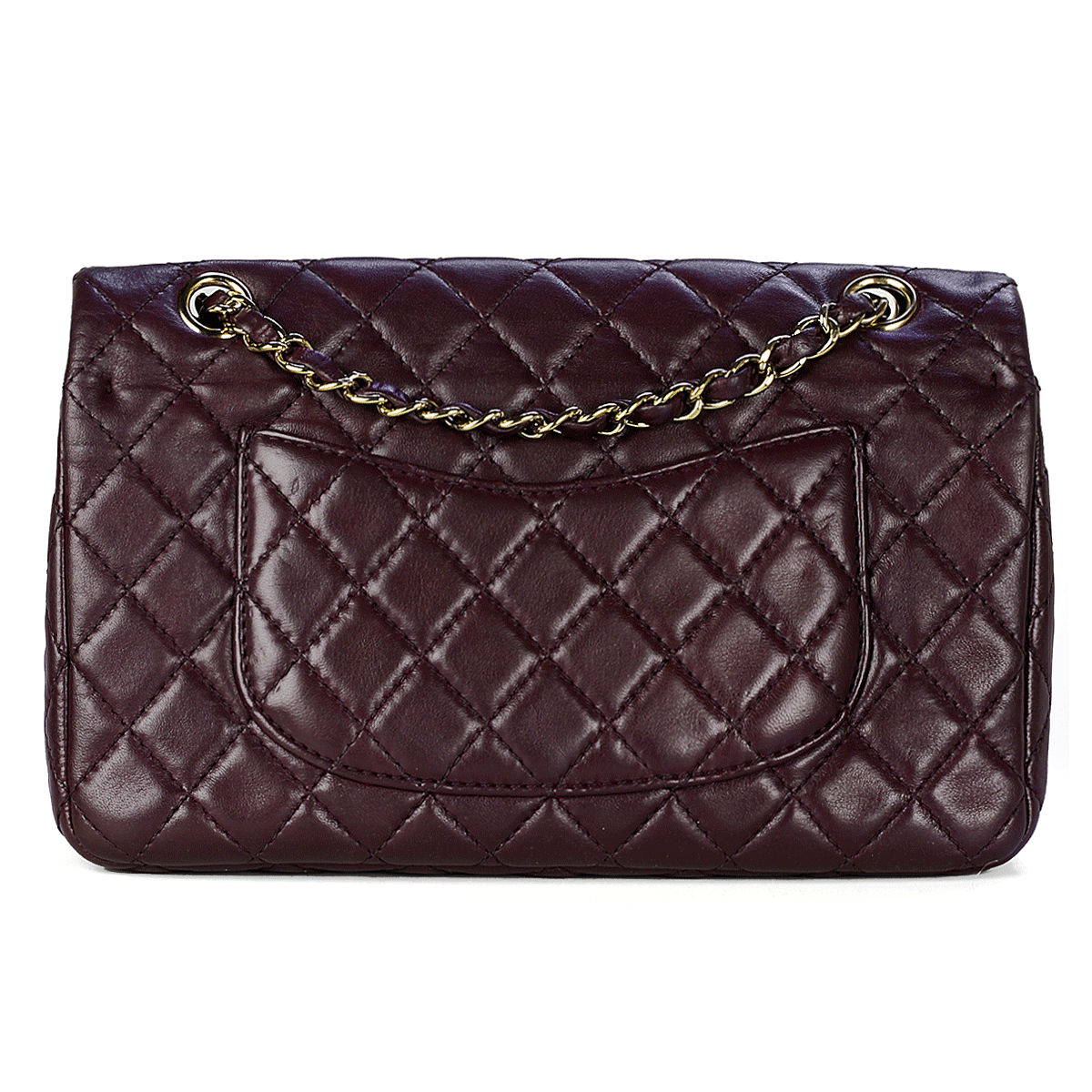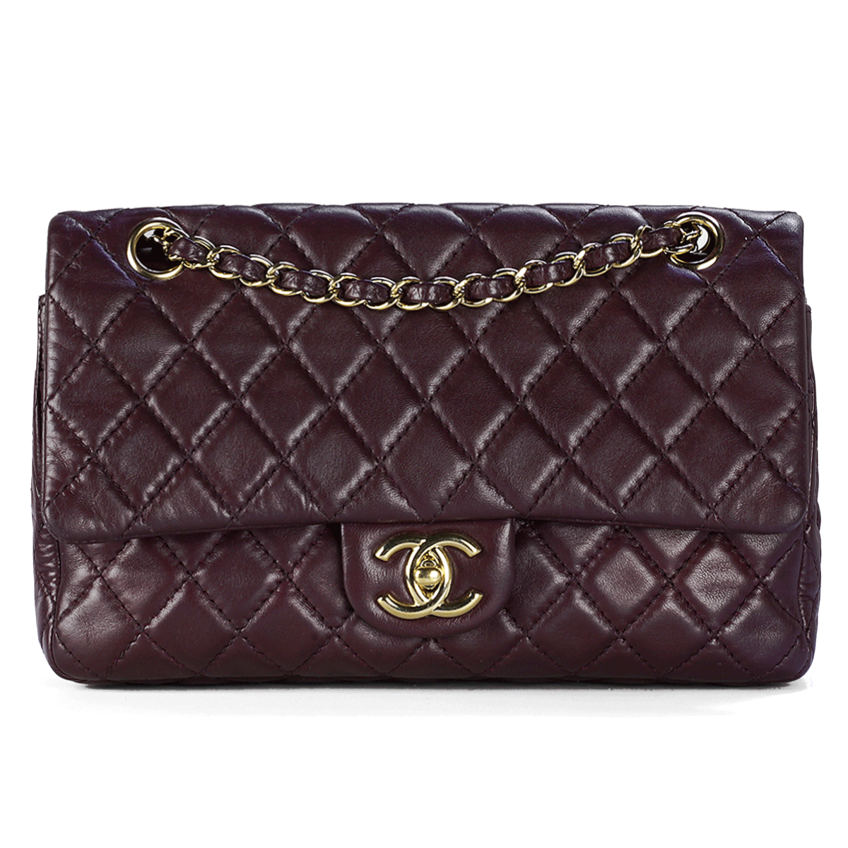 Sac Chanel Classique à Double Rabat en Cuir d'Agneau Matelassé Marron avec Quincaillerie Dorée M