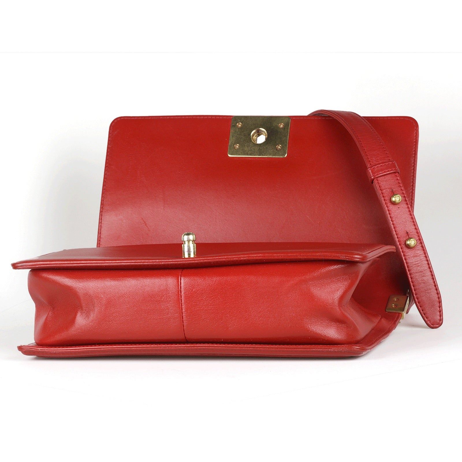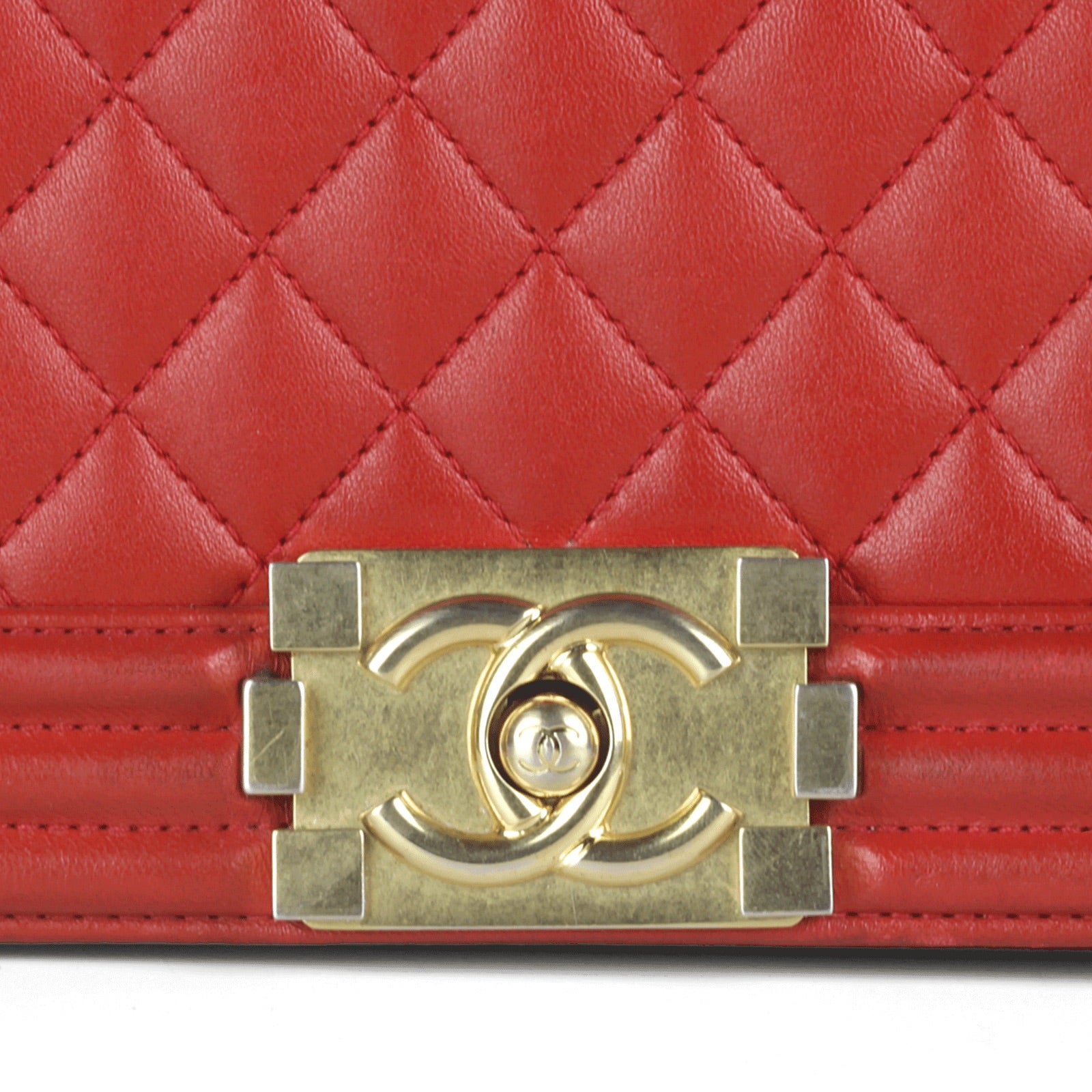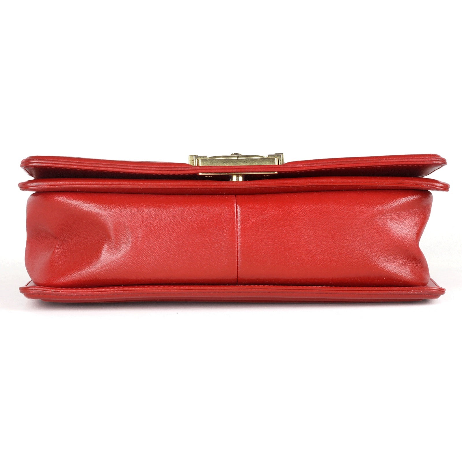 Sac Chanel Boy en cuir d'agneau rouge de Chine avec détails dorés Medium