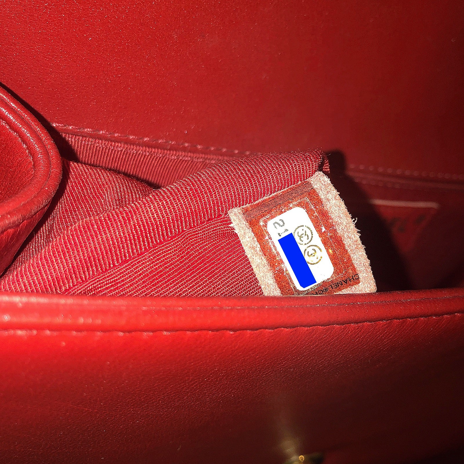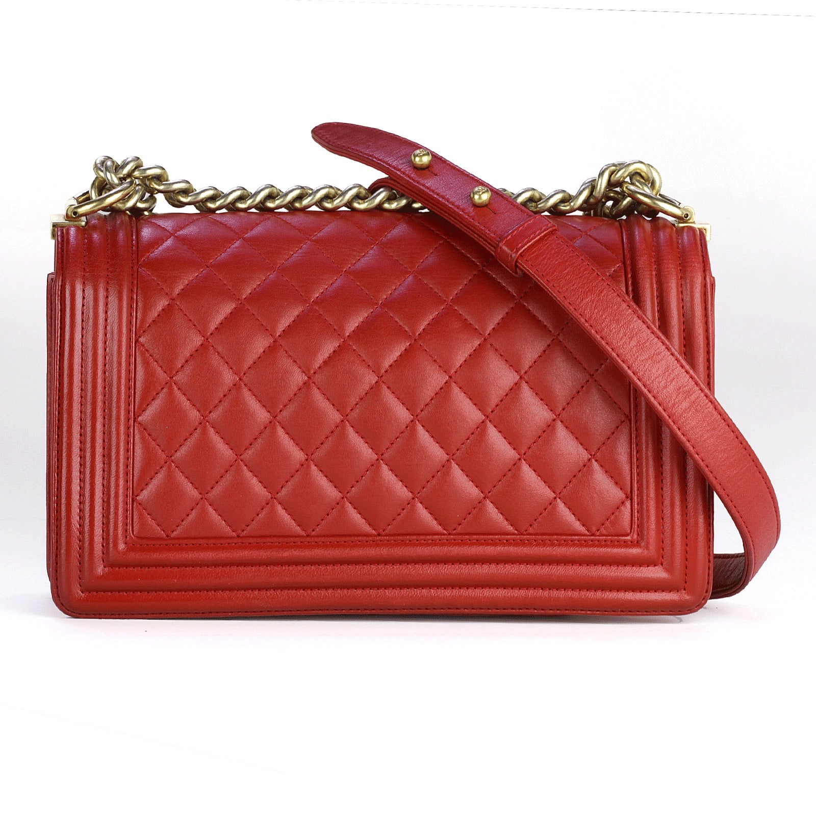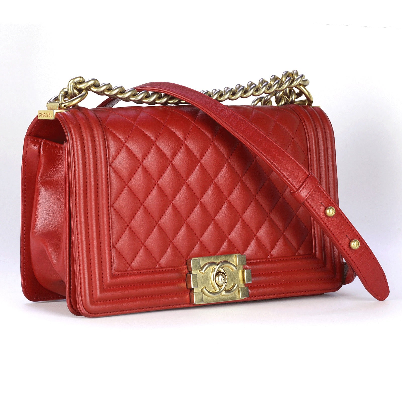 Sac Chanel Boy en cuir d'agneau rouge de Chine avec détails dorés Medium