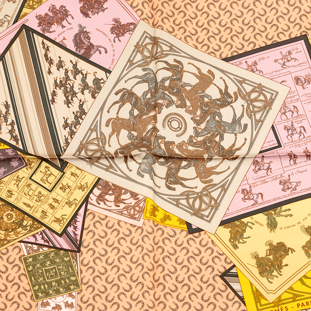 Hermès Foulard "A Cheval Sur Mon Carré" de Bali Barret 90cm Soie