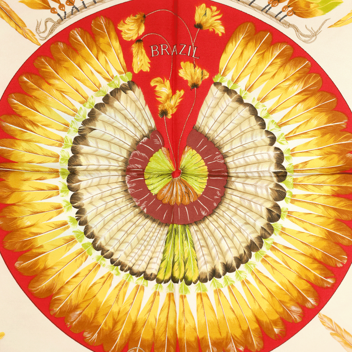 Foulard Hermes "Brésil" de Laurence Bourthoumieux Vintage 90cm Soie